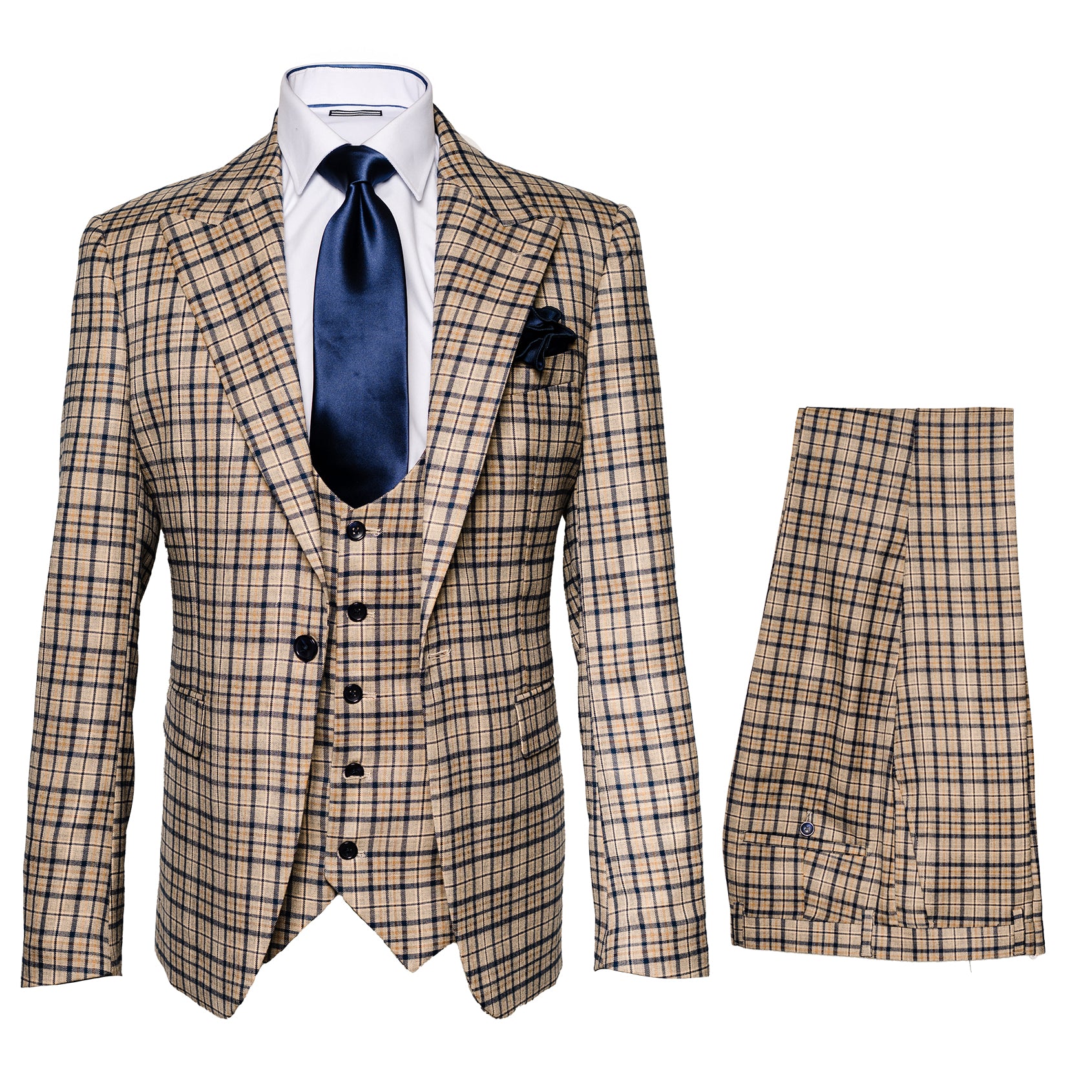 Step up your style with this slim fit 3-piece suit designed for a modern, tailored look. Featuring a single breasted one-button jacket, a 5-button scoop vest, and slim fit flat front pants, this suit delivers versatility and sophistication for any occasion. Whether you’re dressing for a wedding, business event, or a special night out, this suit is built to make a statement.