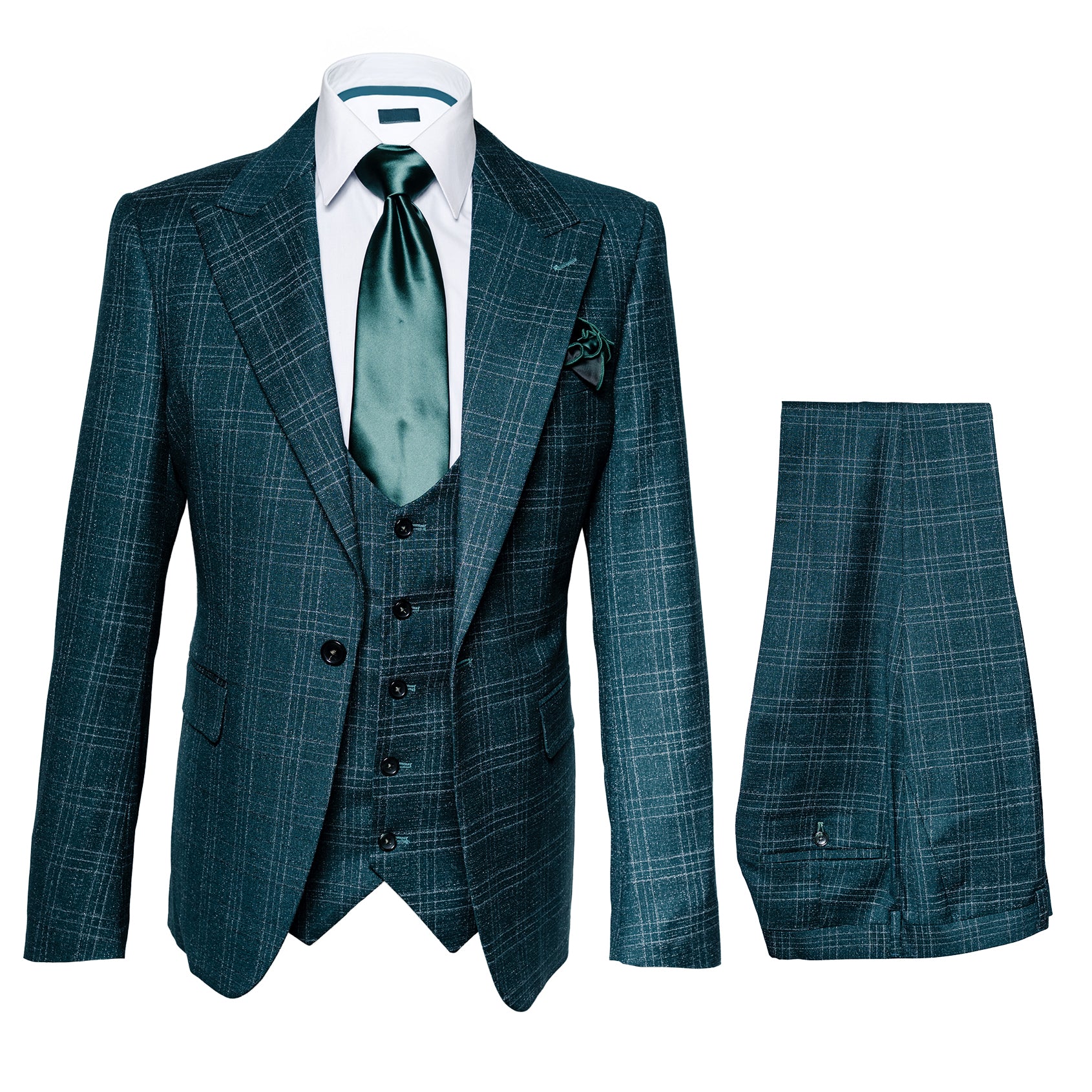 Step up your style with this slim fit 3-piece suit designed for a modern, tailored look. Featuring a single breasted one-button jacket, a 5-button scoop vest, and slim fit flat front pants, this suit delivers versatility and sophistication for any occasion. Whether you’re dressing for a wedding, business event, or a special night out, this suit is built to make a statement.